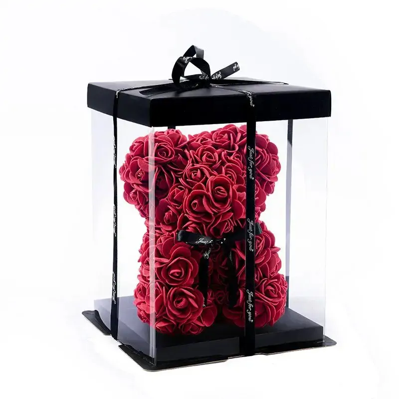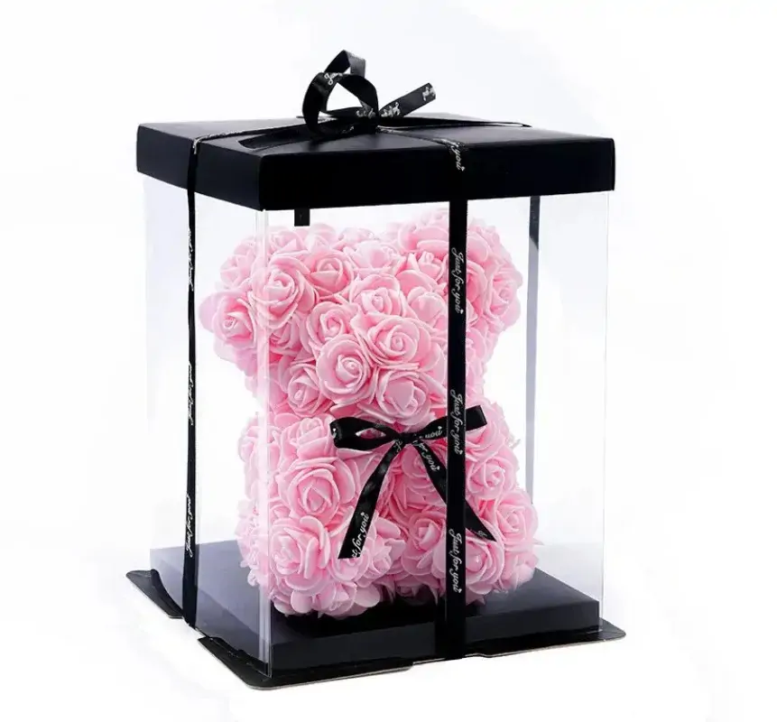 دب وردي من زهور صناعية