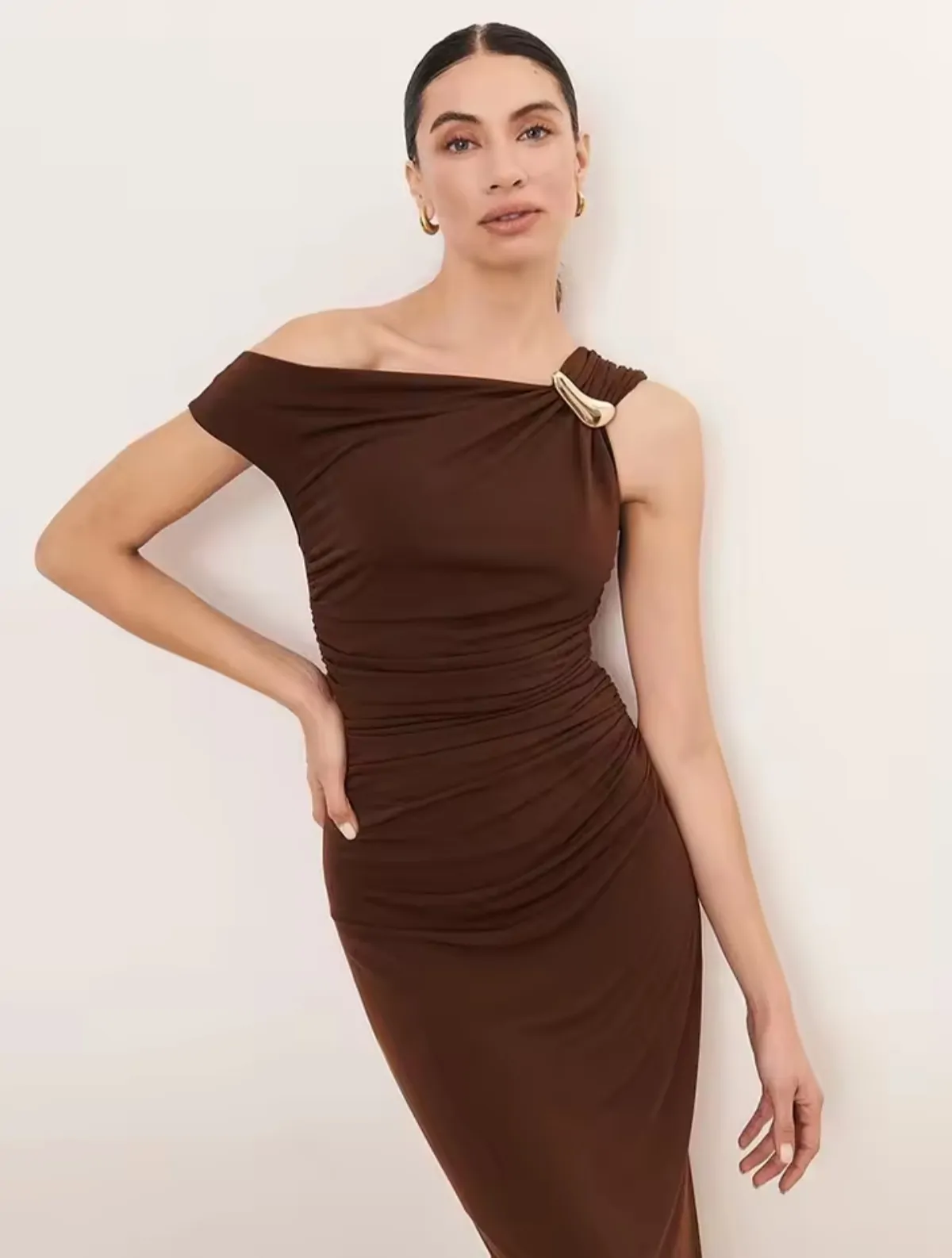 فستان بكتف منحدر صيفي انيق