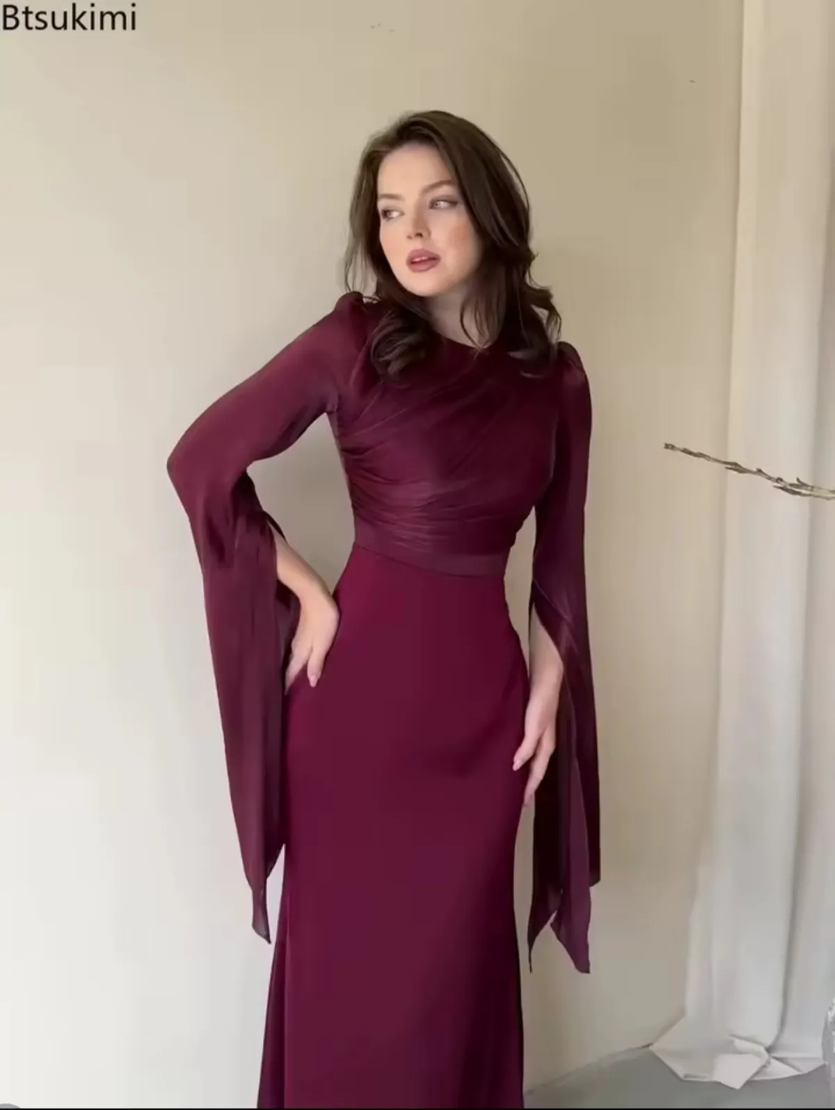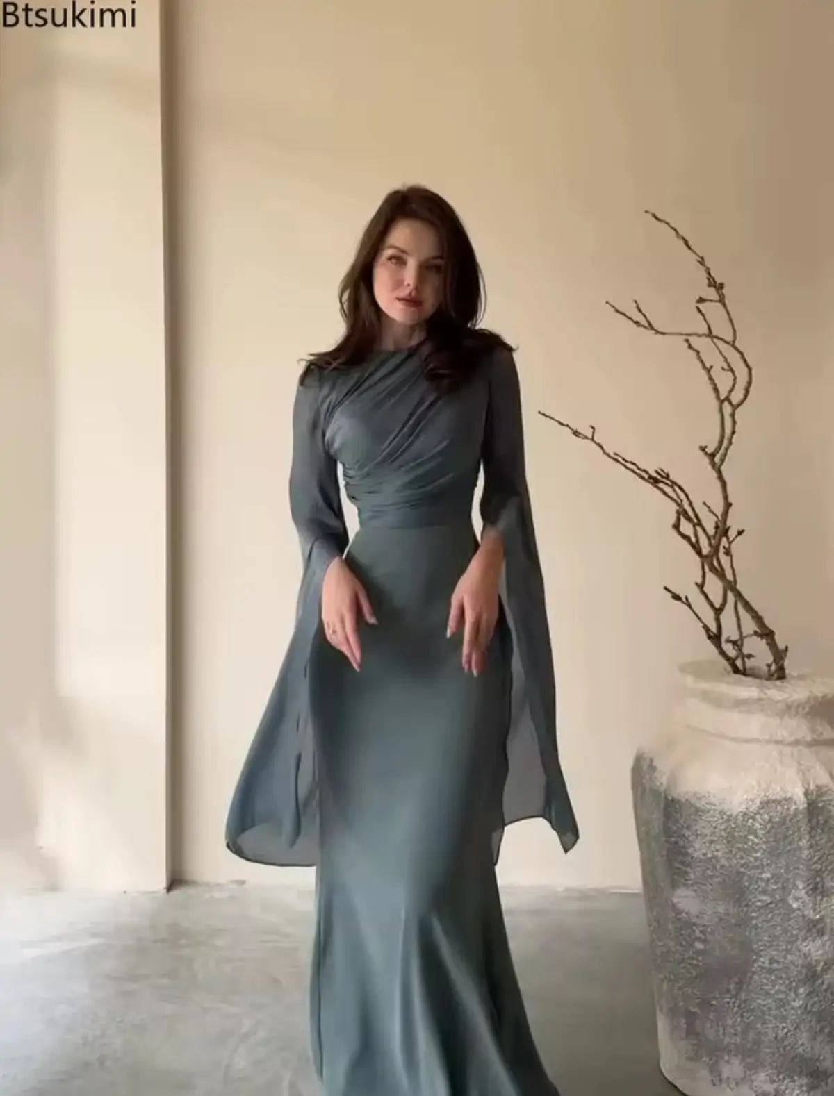 2026 جديد المرإه فستان ماكسي شيك مطوي