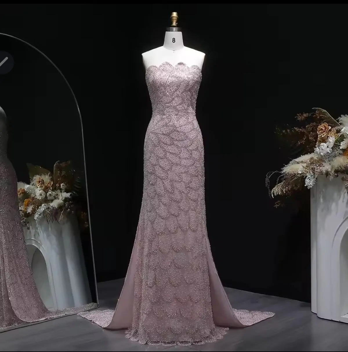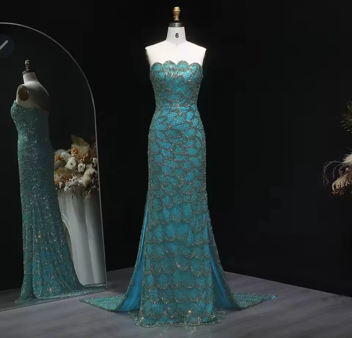 فستن سهرة فاخر بحورية البحر مزين بالترتر